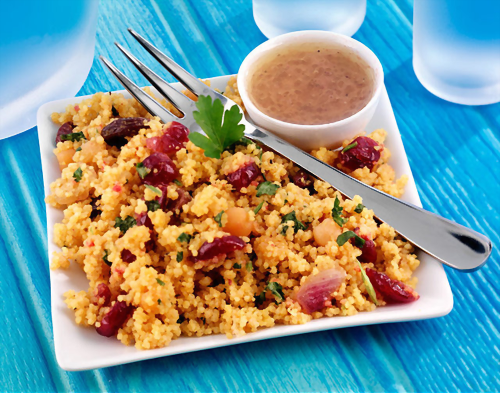 يُفرك الكسكس باستخدام شوكة، ويُترك ليبرد لمدة 10 دقائق.
